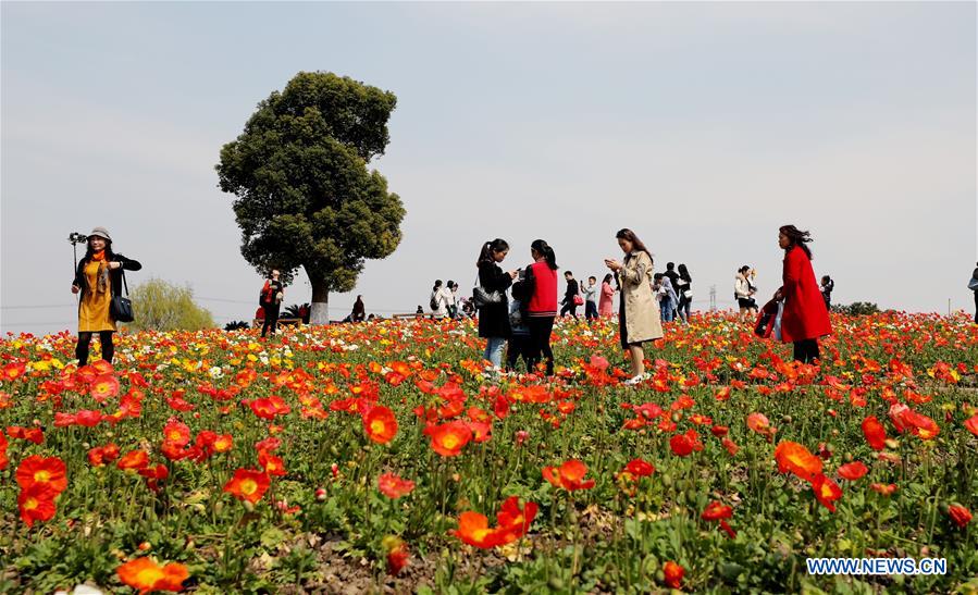 Des gens visitent un jardin écologique dans la ville de Shanghai (est de la Chine), le 23 mars 2019. (Xinhua/Fang Zhe)