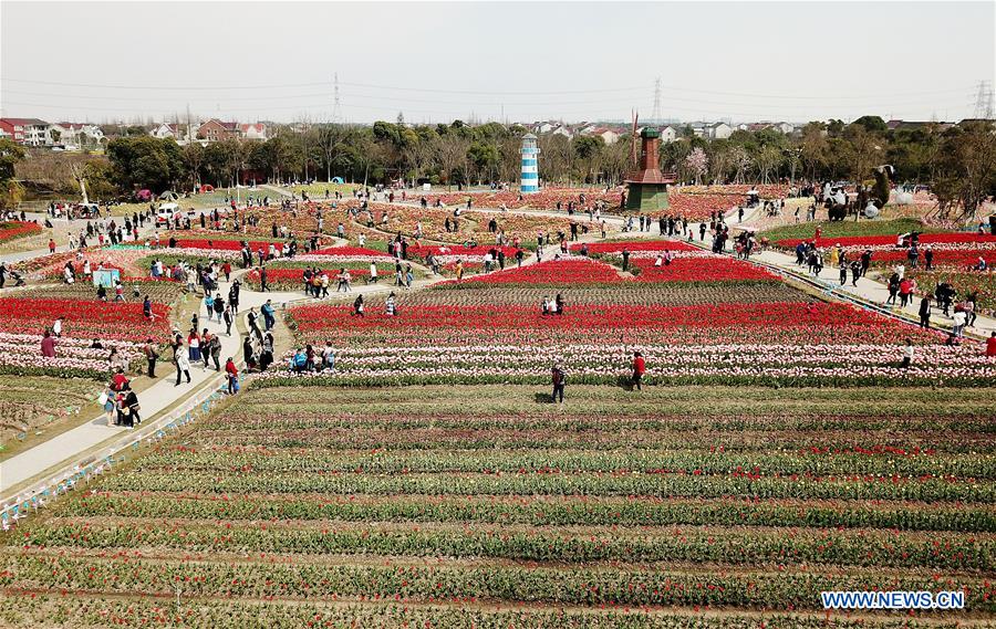 Photo aérienne prise le 23 mars 2019 montrant un jardin écologique dans la ville de Shanghai (est de la Chine). (Xinhua/Fang Zhe)