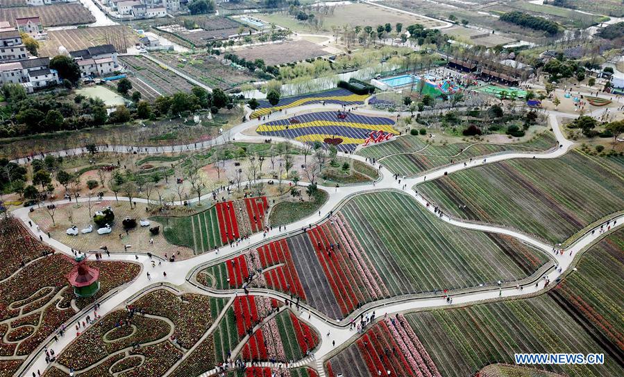 Photo aérienne prise le 23 mars 2019 montrant un jardin écologique dans la ville de Shanghai (est de la Chine). (Xinhua/Fang Zhe)