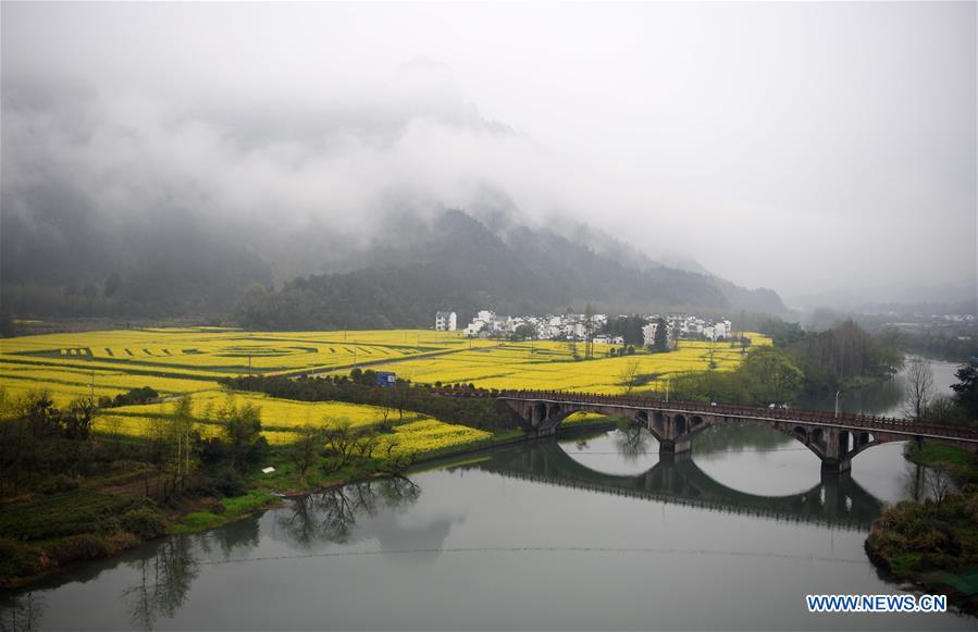 Photo prise le 27 mars 2019 montrant le paysage du mont Qiyun à Huangshan, dans la province chinoise de l'Anhui (est). (Xinhua/Liu Junxi)