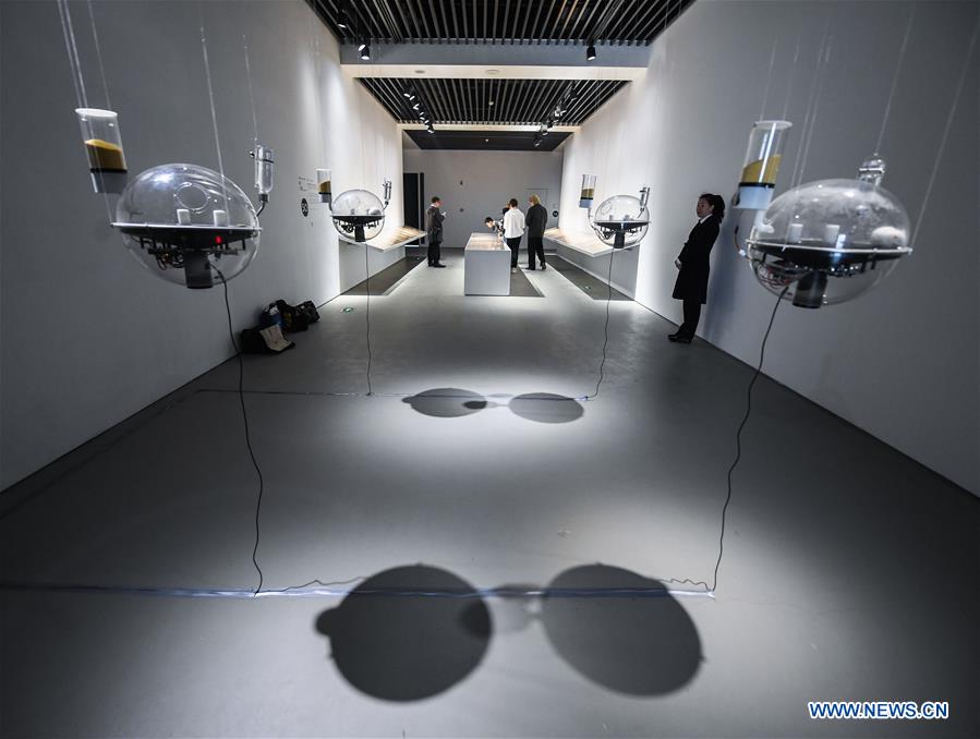 Des gens visitent une exposition à Wuzhen, dans la province du Zhejiang (est de la Chine), le 30 mars 2019. L'Exposition d'art contemporain de Wuzhen 2019 a débuté ici samedi. (Xinhua/Xu Yu)