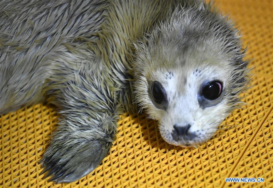 Un bébé phoque nouveau-né au parc Harbin Polarland, à Harbin, capitale de la province chinoise du Heilongjiang (nord-est), le 2 avril 2019. (Xinhua/Wang Jianwei)