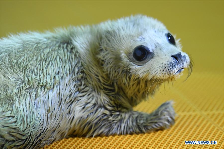 Un bébé phoque nouveau-né au parc Harbin Polarland, à Harbin, capitale de la province chinoise du Heilongjiang (nord-est), le 2 avril 2019. (Xinhua/Wang Jianwei)