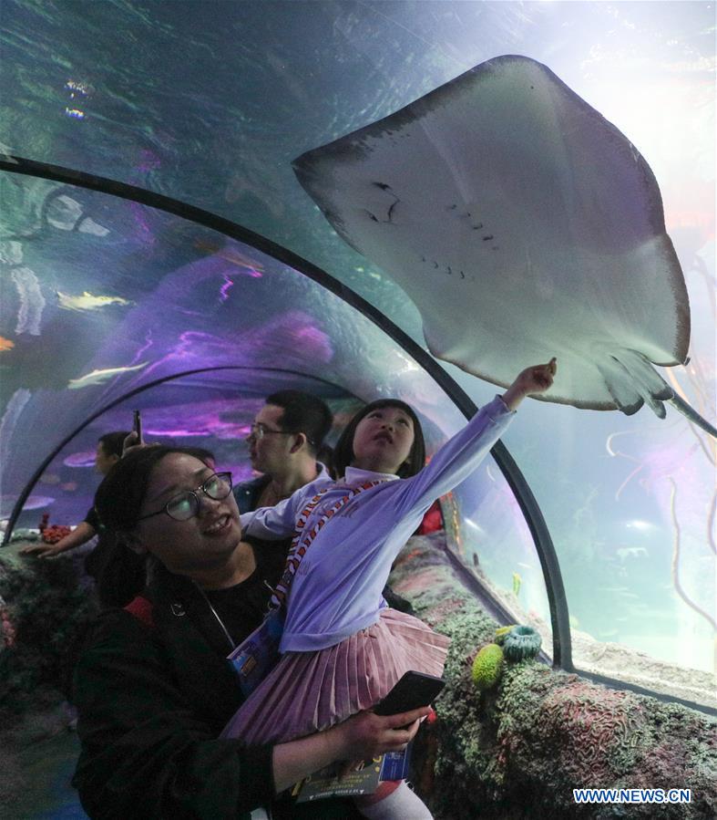 Des touristes visitent un aquarium à Shenyang, dans la province chinoise du Liaoning (nord-est), le 1er mai 2019, le premier jour des congés de la Fête du Travail de quatre jours. (Xinhua/Long Lei)