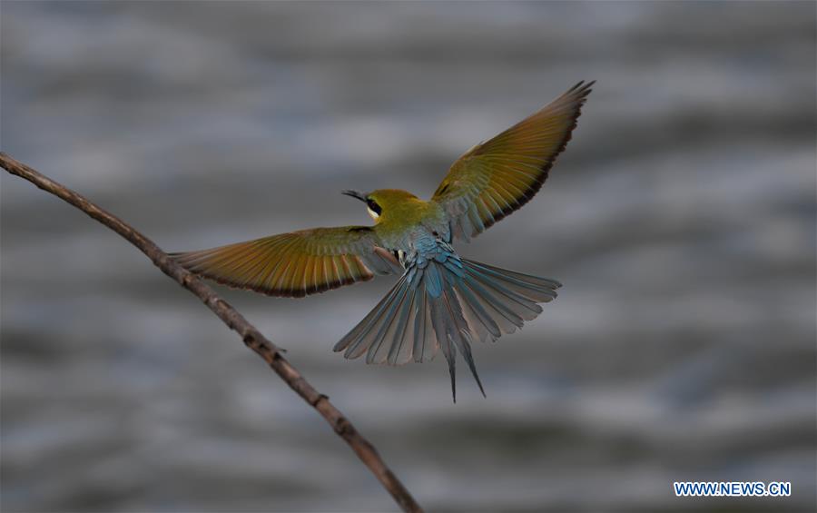 Photo prise le 14 mai 2019 montrant un guêpier à queue d'azur à Haikou, dans la province de Hainan (sud de la Chine). (Xinhua/Yang Guanyu)