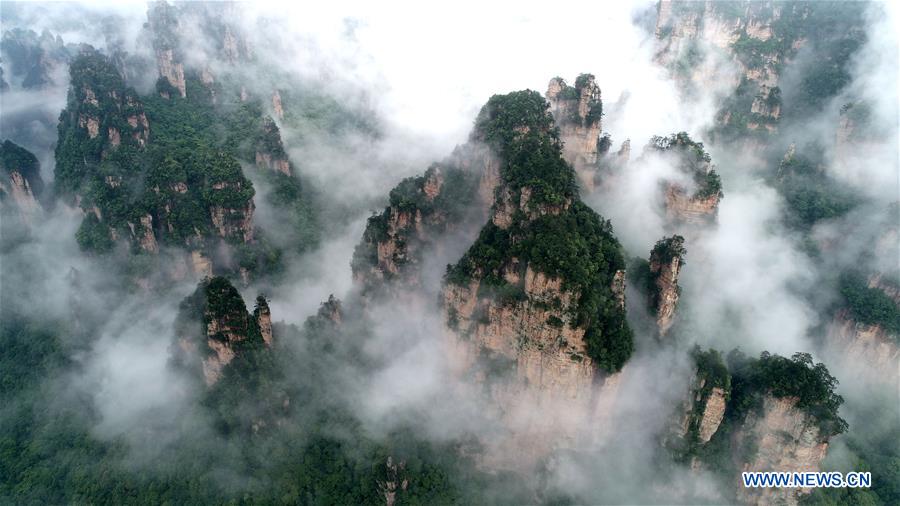 Photo prise le 26 mai 2019 montrant le paysage dans la zone pittoresque de Wulingyuan à Zhangjiajie, ville de la province chinoise du Hunan (centre). (Xinhua/Wu Yongbing)