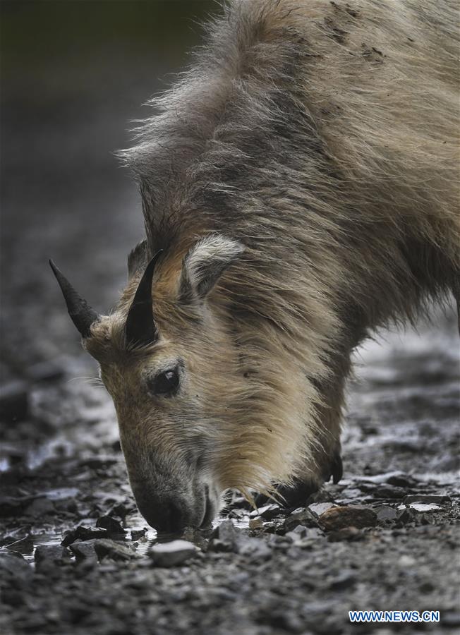 Photo prise le 26 juin 2019 montrant un takin aux monts Qinling, dans la province du Shaanxi (nord-ouest de la Chine). (Xinhua/Tao Ming)