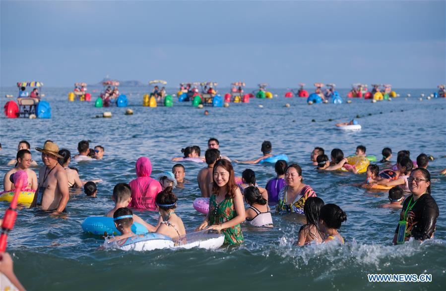 Des gens s'amusent dans le site touristique de Zhujiajian à Zhoushan, dans la province du Zhejiang (est de la Chine), le 22 août 2019. (Xinhua/Xu Yu)