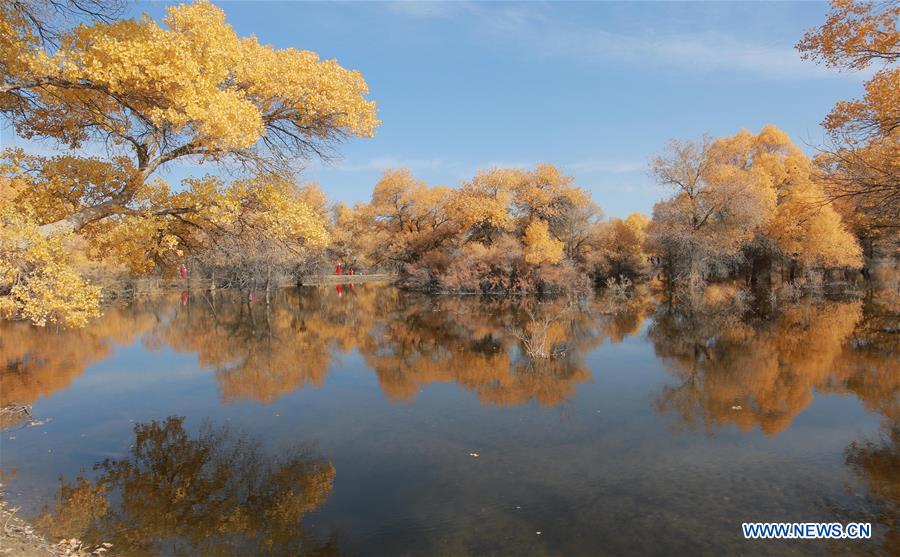 Photo prise le 11 octobre 2020 montrant une forêt de peupliers de l'Euphrate dans le district de Jinta à Jiuquan, dans la province chinoise du Gansu (nord-ouest). (Xinhua/Chen Li)