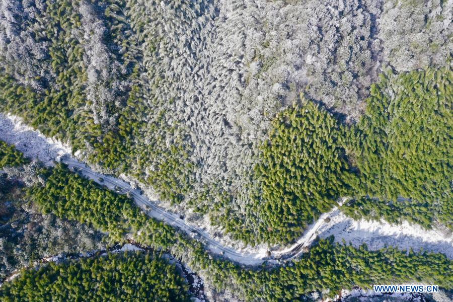 Paysage enneigé du Parc national de Wuyishan, dans la province chinoise du Fujian (sud-est), le 8 janvier 2021. (Xinhua/Jiang Kehong)