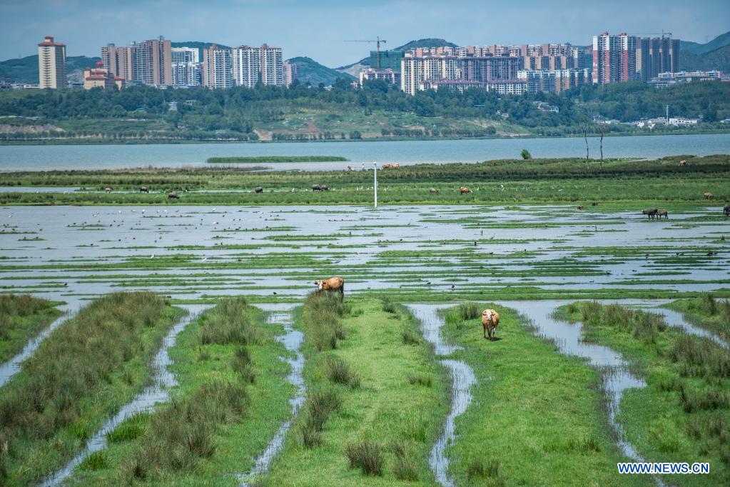 Paysage de la réserve naturelle nationale de Caohai, dans le district autonome Yi, Hui et Miao de Weining, dans la province chinoise du Guizhou (sud-ouest), le 7 juillet 2021. (Xinhua/Tao Liang)