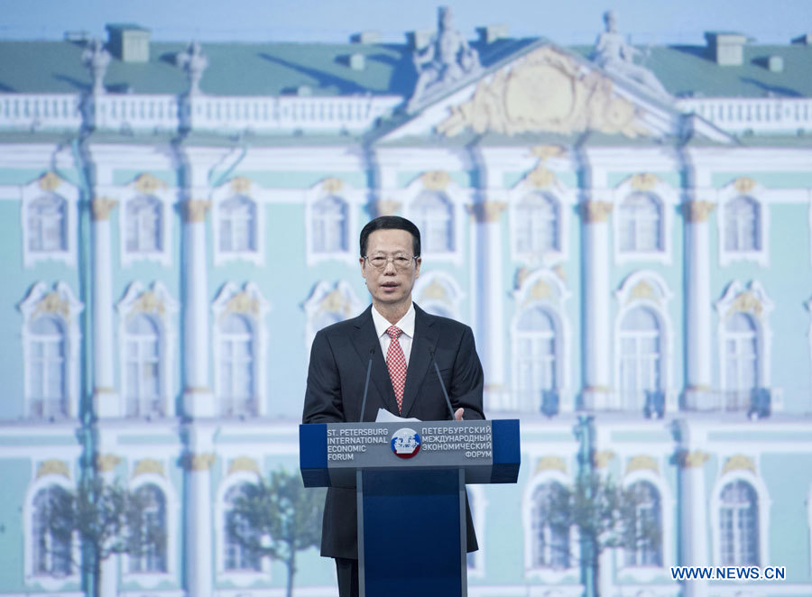 Lors d'un discours prononcé à la réunion annuelle du Forum économique international de St Petersbourg, M. Zhang a indiqué que les deux pays devraient davantage puiser dans leur potentiel et étendre leur coopération en adoptant des perspectives variées.