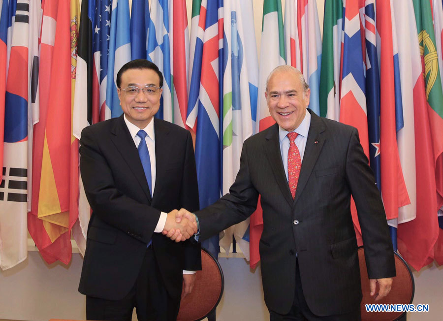 A l'occasion d'une rencontre avec le secrétaire général de l'OCDE José Angel Gurria, M. Li a salué la coopération entre la Chine et l'OCDE depuis 20 ans.