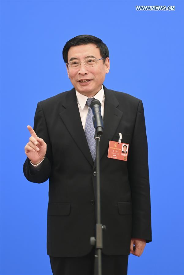 BEIJING, 25 mai (Xinhua) -- Miao Wei, ministre chinois de l'Industrie et des Technologies de l'Information, accorde une interview par liaison vidéo à l'issue de la deuxième réunion plénière de la troisième session de la 13e Assemblée populaire nationale, au Grand Palais du Peuple, à Beijing, capitale chinoise, le 25 mai 2020. (Photo : Chen Yehua)