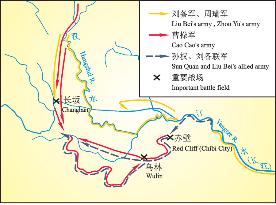 Carte schématique de la bataille de Chibi (Source: la maison d'édition Foreign language teaching and research press)