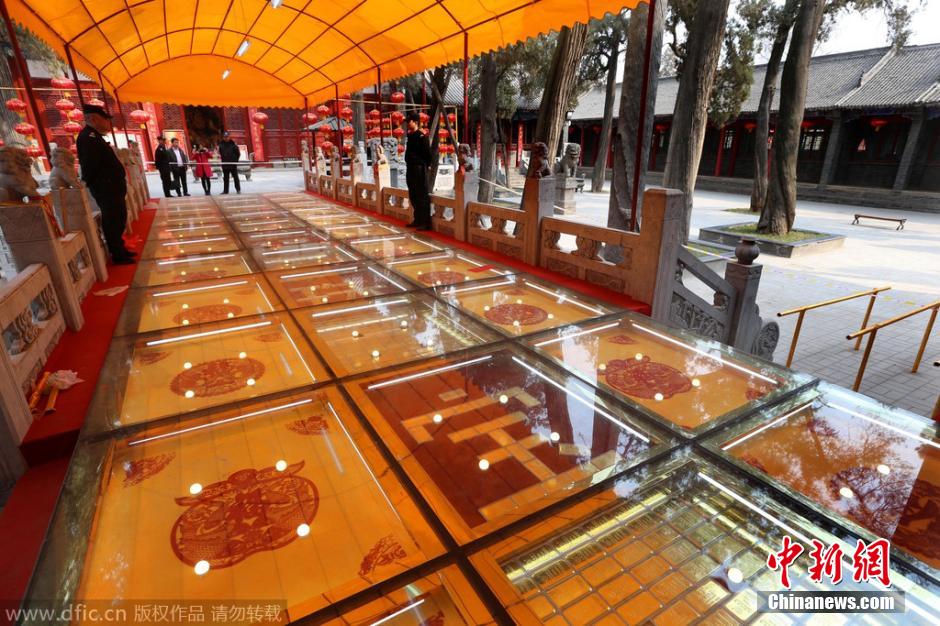 Pour souhaiter de bons voeux aux résidents pour le Nouvel An, les responsables de la foire de Guanlin ont eu l’idée de paver un boulevard d’or de 18,6 m de long et 6,16 m de large, composé de 30 carrés couverts de verre trempé. Pour chaque carré, les briques, mille au total, représentent un motif différent, où 1000 kilos d’or ont été utilisés. Pendant seize jours (du 1er au 16e jour du calendrier lunaire), les habitants pourront visiter et fouler cette artère devenue royale.