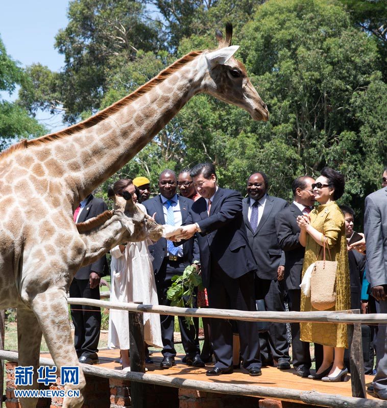 Le président chinois Xi Jinping et son épouse Peng Liyuan visitent une réserve de faune à Harare, au Zimbabwe, le 2 décembre 2015. (Xinhua/Huang Jingwen)