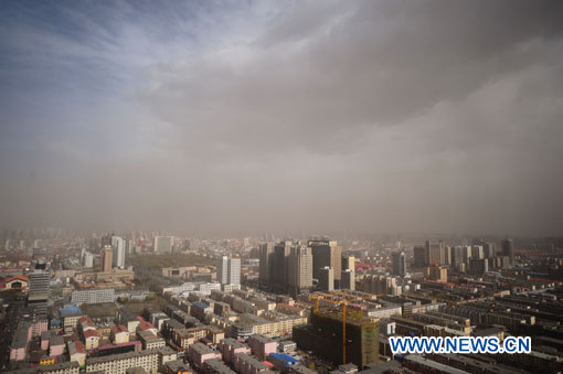 HOHHOT/BEIJING, 15 avril (Xinhua) -- Une forte tempête de sable a balayé mercredi une grande partie du nord de la Chine, dont Beijing, rendant le ciel jaune.