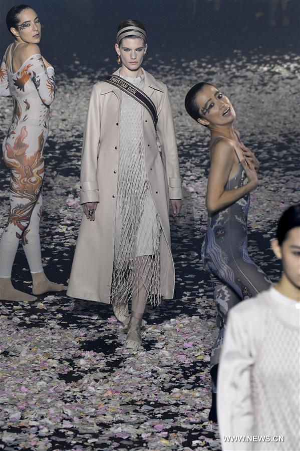 Des mannequins présentent des créations de Christian Dior lors du défilé de la collection femme printemps/été 2019 à Paris, en France, le 24 septembre 2018. (Xinhua/Piero Biasion)