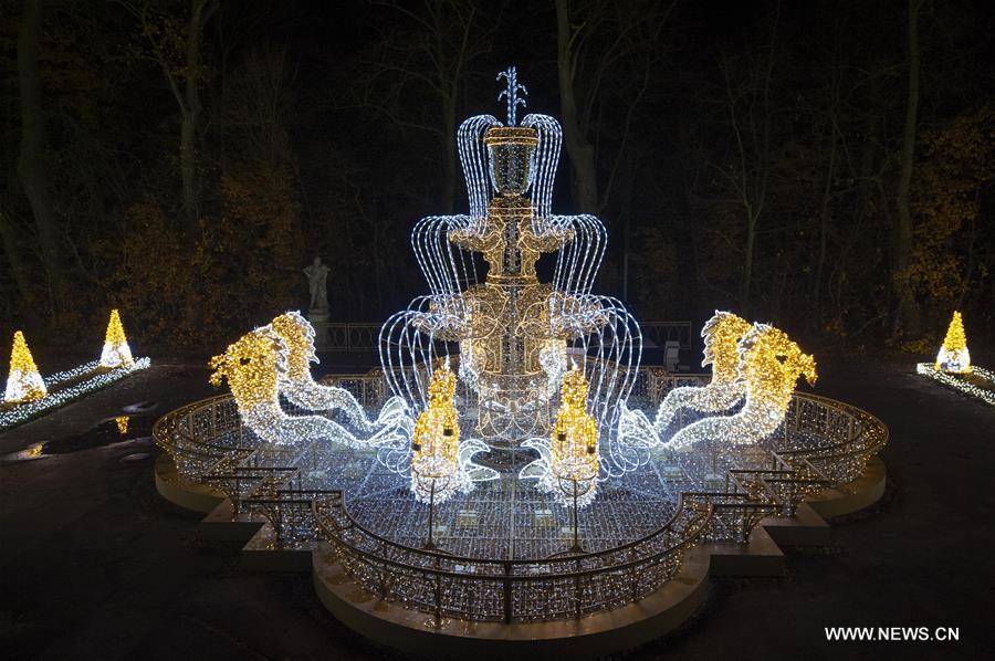 Photo prise le 6 novembre 2018 montrant l'exposition Jardin royal de la lumière au palais de Wilanów à Varsovie, en Pologne. (Xinhua/Jaap Arriens)