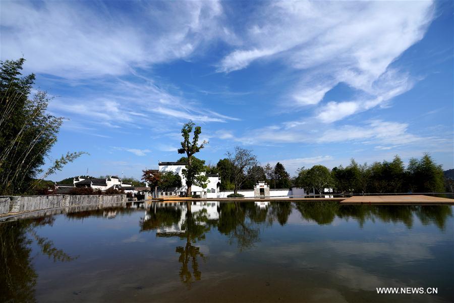 Photo prise le 10 novembre 2018 montrant une vue de maisons anciennes après la pluie dans le district de Wuyuan de la province du Jiangxi (est de la Chine). (Xinhua/Song Zhenping)