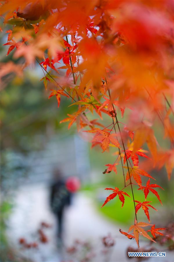 Photo prise le 22 novembre 2018 montrant des feuilles d'érable dans un parc à Bijie, dans la province du Guizhou (sud-ouest de la Chine). (Xinhua/Wang Chunliang)