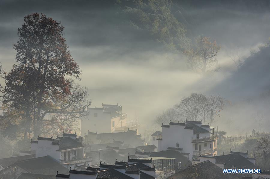 Photo prise le 24 novembre 2018 montrant le paysage du village de Chengcun du district de Wuyuan, dans la province du Jiangxi (est de la Chine). (Xinhua/Hu Dunhuang)