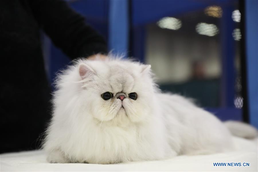Photo prise le 24 novembre 2018 montrant un chat lors d'une exposition de chats à Bologne, en Italie. Environ 170 chats ont participé à cette exposition du 24 au 25 novembre. (Xinhua/Cheng Tingting)