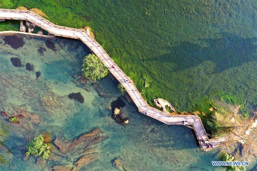 Photo aérienne prise le 27 novembre 2018 montrant le paysage du village d'E'quan du bourg de Xinjing à Jingxi, dans la région autonome Zhuang du Guangxi (sud de la Chine). (Xinhua/Zhang Shanchen)