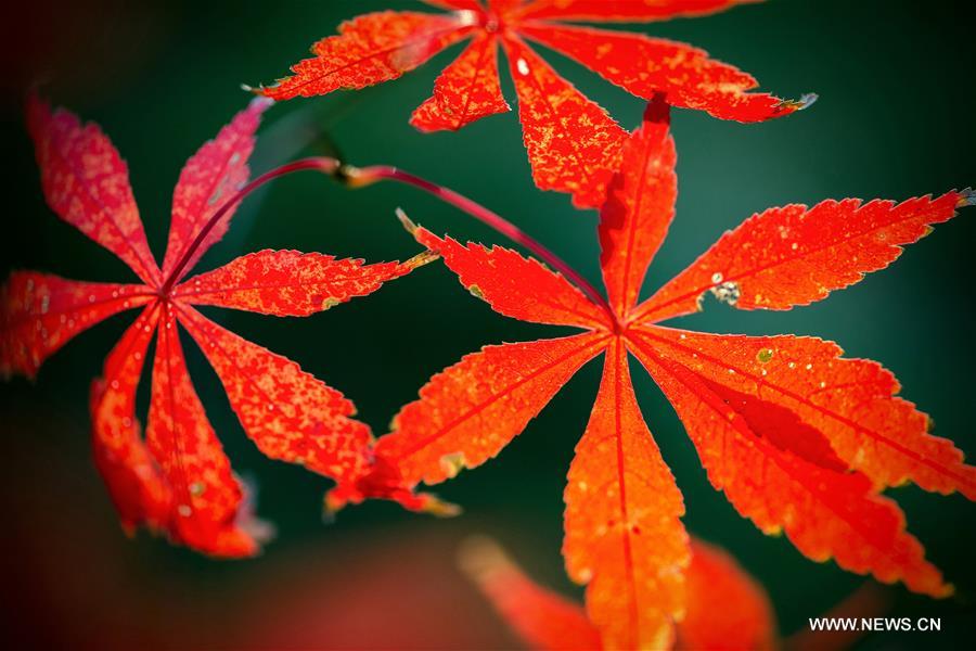 La photo prise le 29 novembre 2018 montre des feuilles d'érable dans un jardin botanique à Nanjing, capitale de la province chinoise du Jiangsu (est). (Xinhua/Su Yang)