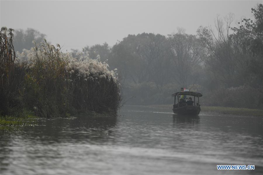 Des gens visitent le Parc national des zones humides de Xixi, à Hangzhou, capitale de la province chinoise du Zhejiang (est), le 30 novembre 2018. (Xinhua/Huang Zongzhi)