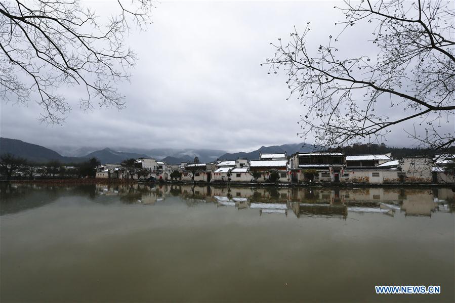 Photo prise le 9 décembre 2018 montrant des paysages de neiges du village de Hongcun du district de Yixian, dans la province de l'Anhui (est de la Chine). La vague de froid a entraîné ces derniers jours des chutes de neige. (Xinhua/Shi Yalei)