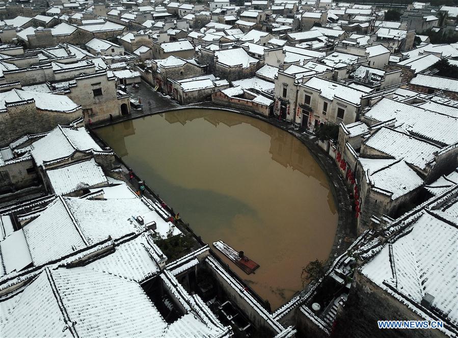 Photo prise le 9 décembre 2018 montrant des paysages de neiges du village de Hongcundu district de Yixian, dans la province de l'Anhui(est de la Chine). La vague de froid a entraîné ces derniers jours des chutes de neige.(Xinhua/Shi Yalei)