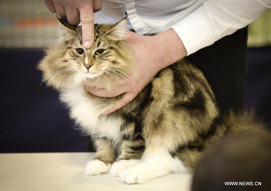 Photo prise le 15 décembre 2018 montrant un chat lors d'un salon du chat de 2 jours à Varsovie, capitale de la Pologne. Plus de 100 éleveurs de chats se sont rassemblés pour l'exposition à Varsovie afin de montrer leurs chats de race. (Xinhua/Jaap Arriens)