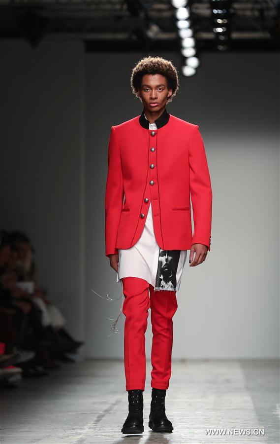 Un mannequin présente une création d'Isabel Benenato lors de la semaine de la mode masculine de Milan à Milan, en Italie, le 14 janvier 2019. (Xinhua/Cheng Tingting)