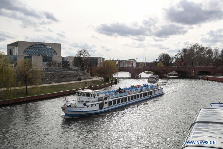 Des bateaux touristiques naviguent sur la rivière Spree à Berlin, capitale de l'Allemagne, le 12 mars 2019. (Xinhua/Shan Yuqi)