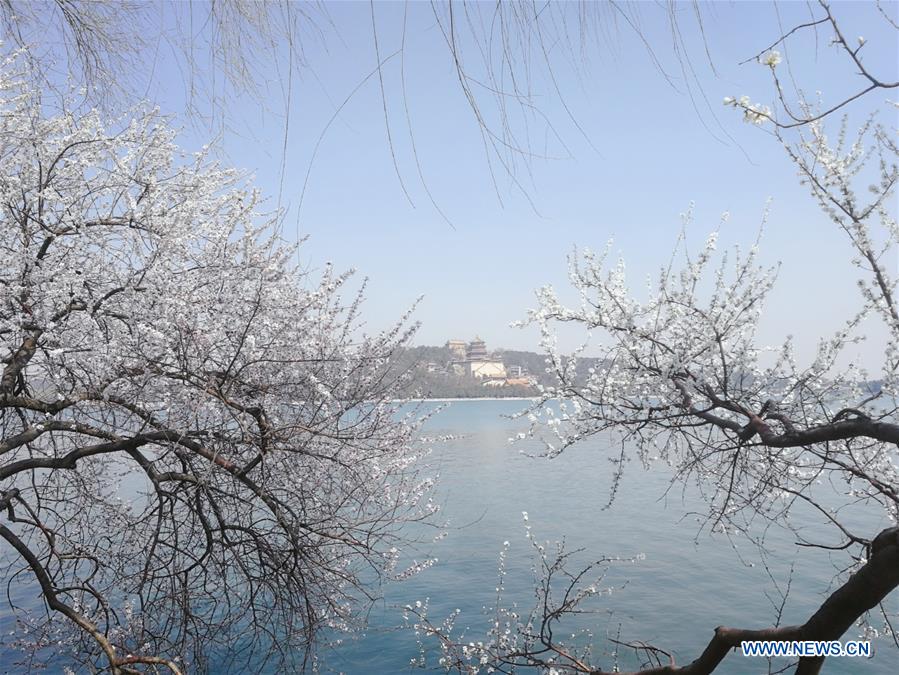 Photo prise avec un téléphone portable montrant le paysage printanier dans le Palais d'été à Beijing, capitale de la Chine, le 17 mars 2019. (Xinhua/Zhang Chuanqi)