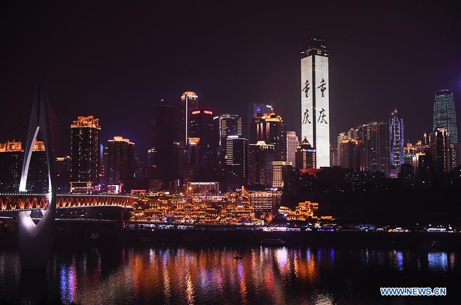Photo prise le 19 mars 2019 montrant la vue nocturne à Chongqing, dans le sud-ouest de la Chine. (Xinhua/Wang Quanchao)