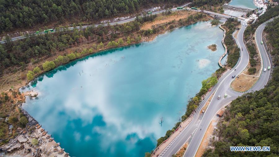 Photo aérienne prise le 21 avril 2019 montrant le paysage de la Vallée de la Lune Bleue à Lijiang, dans la province du Yunnan (sud-ouest de la Chine). (Xinhua/Hu Chao)