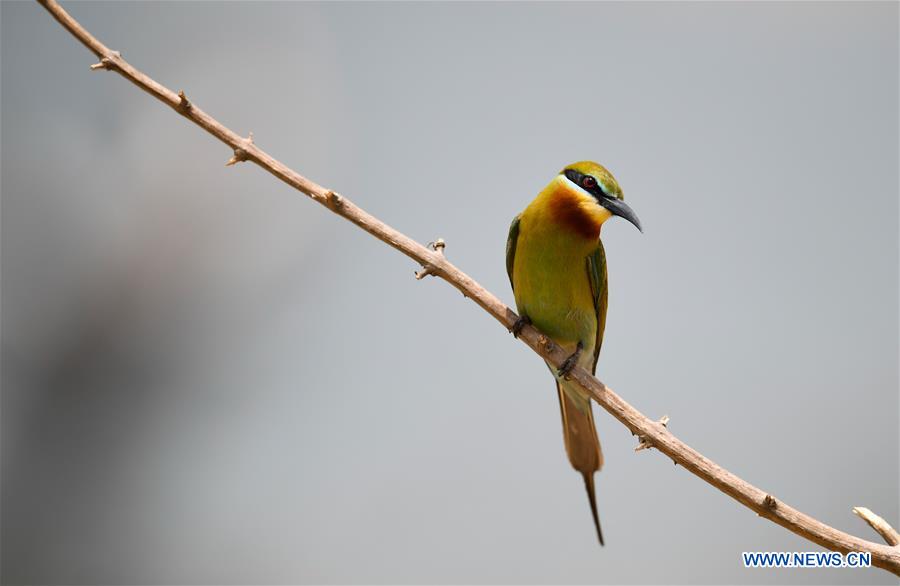 Photo prise le 14 mai 2019 montrant un guêpier à queue d'azur à Haikou, dans la province de Hainan (sud de la Chine). (Xinhua/Yang Guanyu)