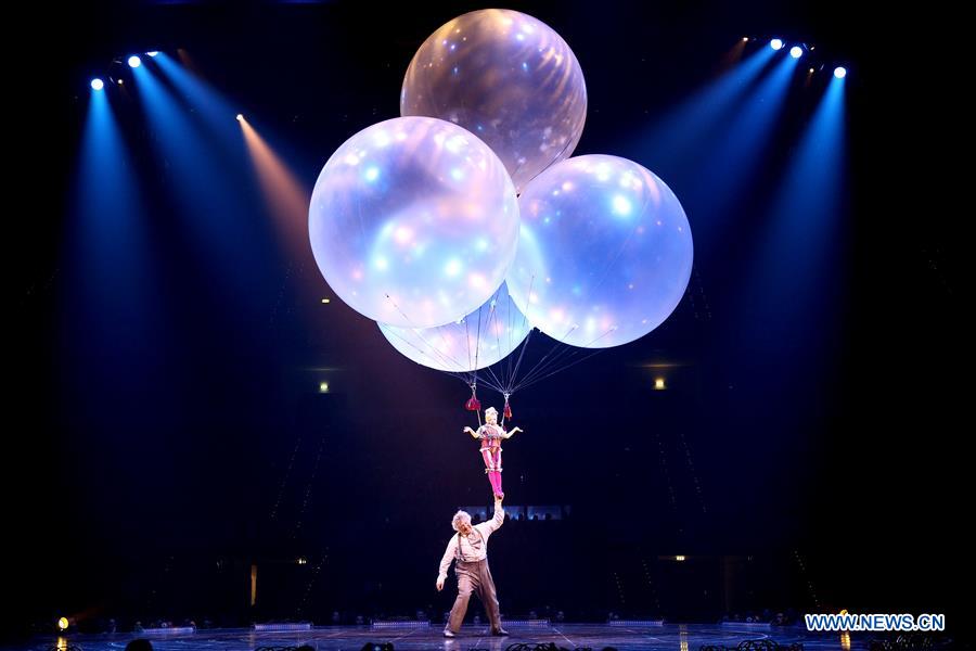 LISBONNE, 5 janvier (Xinhua) -- Des artistes lors de la première de "Corteo", spectacle du Cirque du Soleil, à Lisbonne, au Portugal, le 3 janvier 2020. (Photo : Pedro Fiuza)