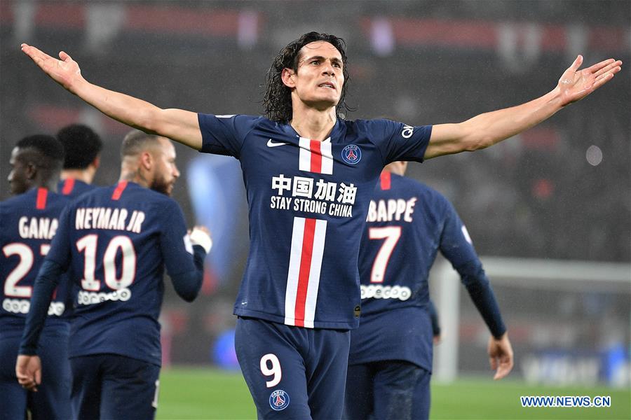 PARIS, 24 février (Xinhua) -- Photo de Edinson Cavani du Paris Saint-Germain lors d'un match de football de Ligue 1 entre le Paris Saint-Germain et Bordeaux, à Paris, en France, le 23 février 2020. (Photo : Jack Chan)