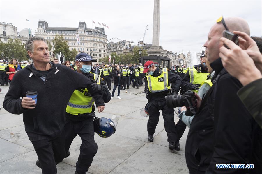 Plusieurs manifestants et policiers blessés dans des affrontements lors d'une manifestation anti-confinement dans le centre de Londres