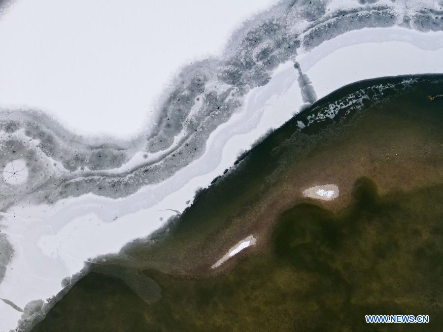 Paysage hivernal de la rivière Yarkant dans le district de Zepu, dans la région autonome ouïgoure du Xinjiang (nord-ouest de la Chine), le 18 décembre 2020. (Xinhua/Gao Han)