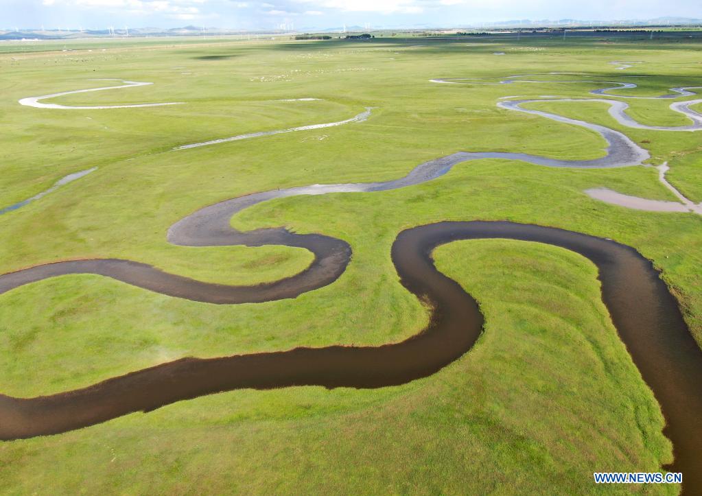 ZHANGJIAKOU, 19 juillet (Xinhua) -- Vue aérienne d'une prairie dans l'arrondissement de gestion de Saibei, à Zhangjiakou, dans la province chinoise du Hebei (nord), le 17 juillet 2021. (Photo : Wu Diansen)