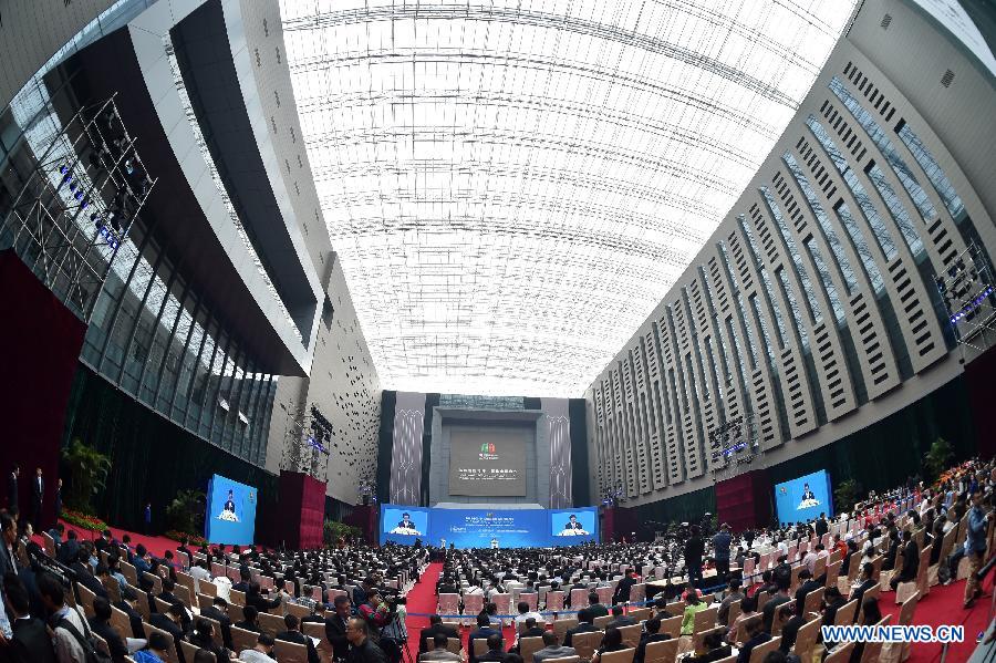La cérémonie d'ouverture de l'Exposition Chine-Pays arabes 2015 a lieu à Yinchuan, capitale de la région autonome Hui du Ningxia (nord-ouest de la Chine), le 10 septembre 2015. L'Exposition Chine-Pays arabes 2015 a débuté jeudi à Yinchuan. (Xinhua/Li Ran)