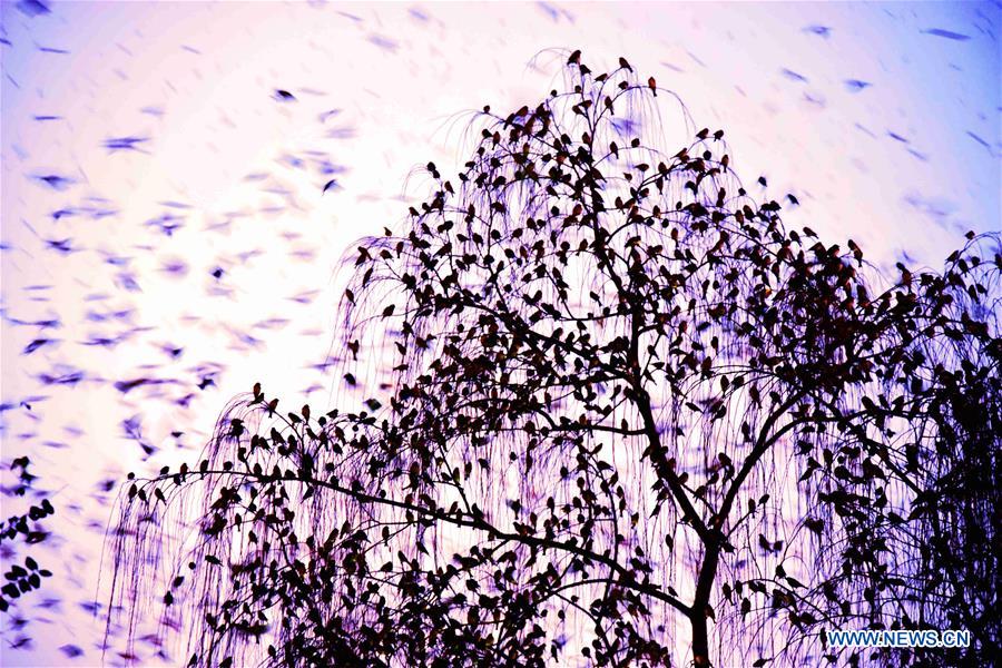 Photo prise le 2 février 2016 montrant des oiseaux près de la Source Baotu à Jinan, dans la province du Shandong (est de la Chine). (Xinhua/Gao Dongfeng)