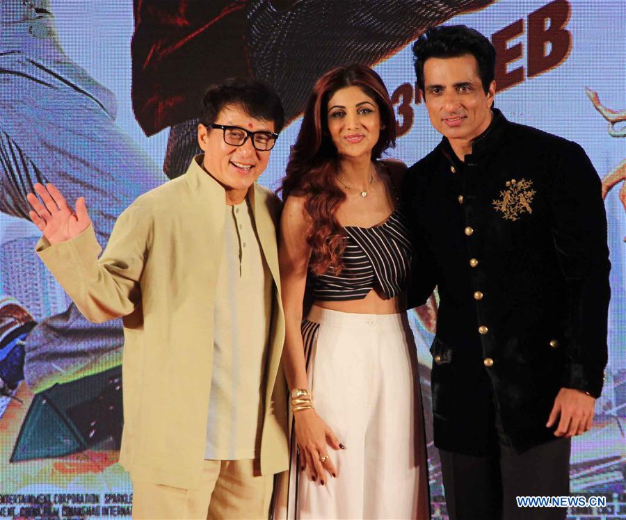 L'acteur chinois Jackie Chan pose pour la photo lors d'un événement de promotion pour son nouveau film "Kung Fu Yoga" à Bombay, en Inde, le 23 janvier 2017. (Xinhua/Stringer)