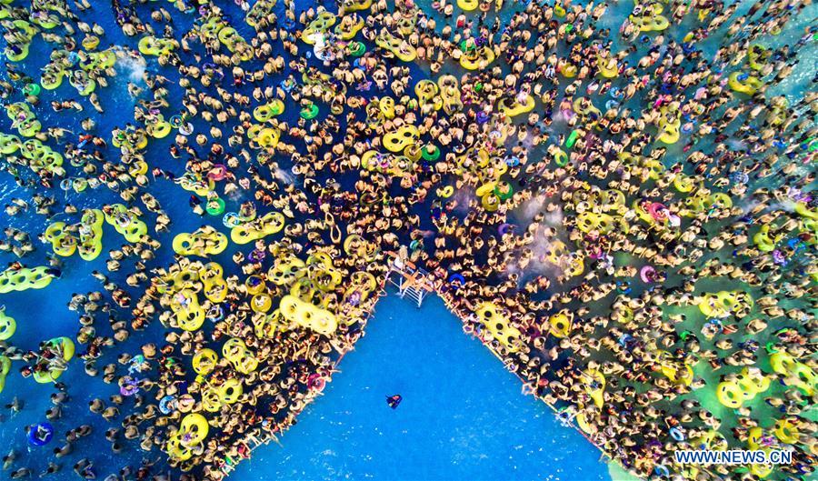 Des gens s'amusent dans un parc aquatique à Wuhan, capitale de la province du Hubei (centre de la Chine), le 15 juillet 2017. (Xinhua/Xiong Qi)