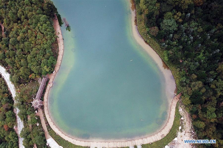 Photo aérienne prise le 19 septembre 2017 montrant le paysage du Parc national forestier Guanegou dans le district de Dangchang à Longnan, dans la province du Gansu (nord-ouest de la Chine). (Xinhua/Fan Peishen)